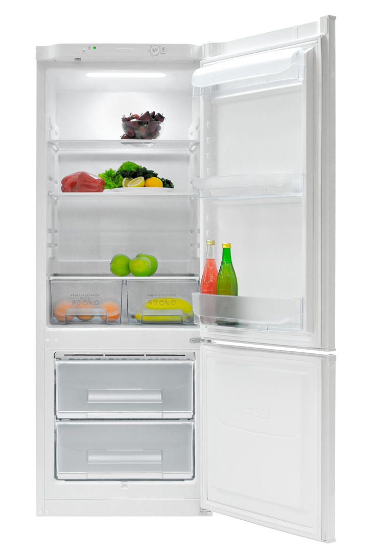 Полки из ударопрочного стекла выдерживают нагрузку до 40 кг. Их легко можно перемещать по высоте, что дает возможность разместить продукты