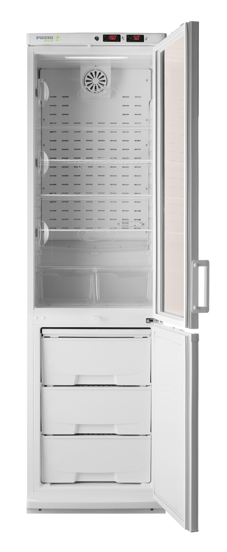 Предназначен для работы в лабораториях различных направлений и диагностических центрах (ПЦР, биохимические, иммунологические и гематологические исследования), на станциях переливания крови и в серологических лабораториях, при оснащении аптек, аптечных производственных отделений и фармацевтических предприятий, прививочных кабинетов. Холодильник обеспечивает потребность в хранении лекарственных препаратов, средств, образцов, тест-наборов и других фармацевтических средств при температуре от +2°С до +15°С в холодильной камере и при температурах от минус 10°С до минус 25°С в морозильной камере. Основные характеристики: 2 микропроцессорных регулятора температур со сверхчувствительными датчиками температуры, система принудительной циркуляции воздуха в холодильной камере, в холодильном отделении дверь стеклянная с замком, в морозильном отделении дверь металлическая с замком, автоматическое поддержание температуры в камерах, сигнализация при отклонении температуры от заданной, отображение температуры на табло панели управления, отключение вентилятора при открывании двери; прозрачные дверки, закрывающие полки по высоте всего объема.